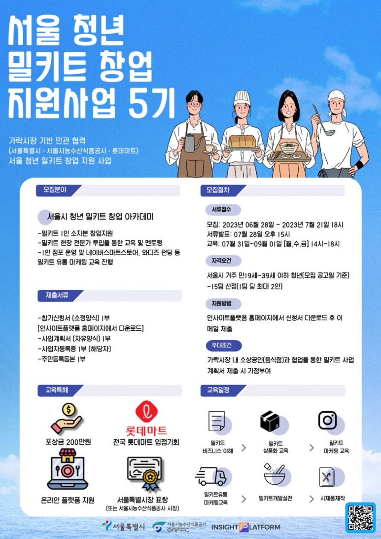 1. 서울 청년 밀키트 창업 지원 사업 5기 모집 공고