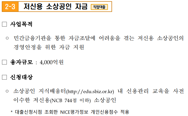 - 특별경영안정자금(대리대출/직접대출)