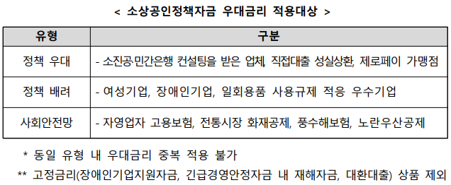 ▶ 대출금리는 정책자금 기준금리에 사업별 가산금리를 적용합니다. 최대 0.3%p까지 금리우대를 지원합니다.