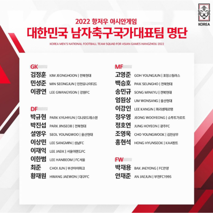 모든 선수들의 행복하고 건강한 선수 생활을 응원하면서 이번 항저우 아시안게임 축구 결승전으로 인해 군대 면제가 가능한 선수들이 누구인지 알아볼까요?