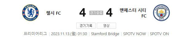 2023년 11월 13일 01:30 첼시 맨시티전은 전반 25분까지 우열을 가릴 수 없을 정도로