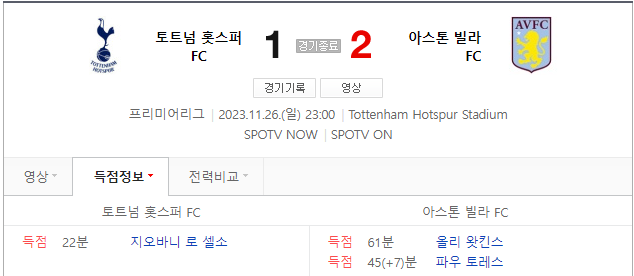 2023-24 EPL 토트넘 vs 아스톤빌라전에서