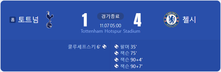 토트넘 첼시, 11/07 2023-24 EPL 11라운드 2명 퇴장, 2명 부상, 그럼에도 높은 평점의 토트넘!