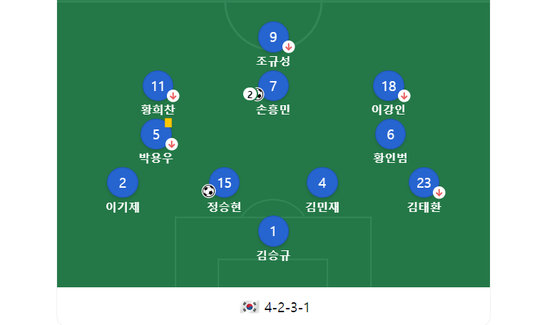 황의조, 이재성, 설영우, 정우 등이 있었습니다.
