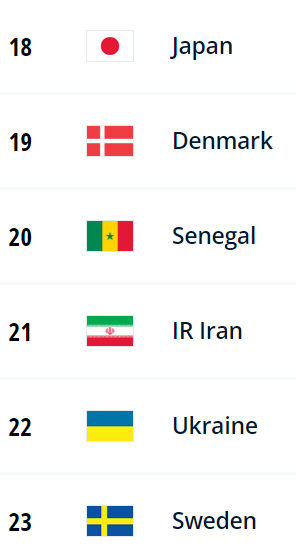 이웃나라 일본은 18위로, 19위에서 1단계 올라선 모습을 보이고 있습니다.