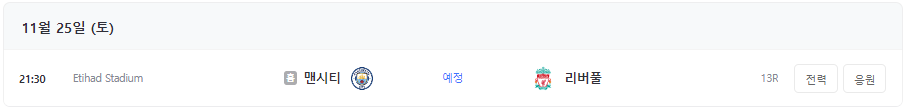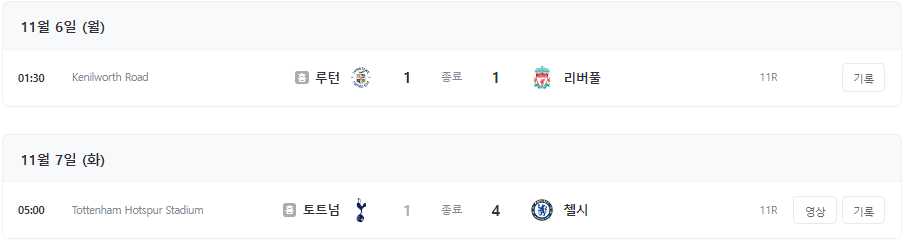 11/11일 토트넘 경기를 시작으로, 11/12 리버풀과 아스널 경기가 있고